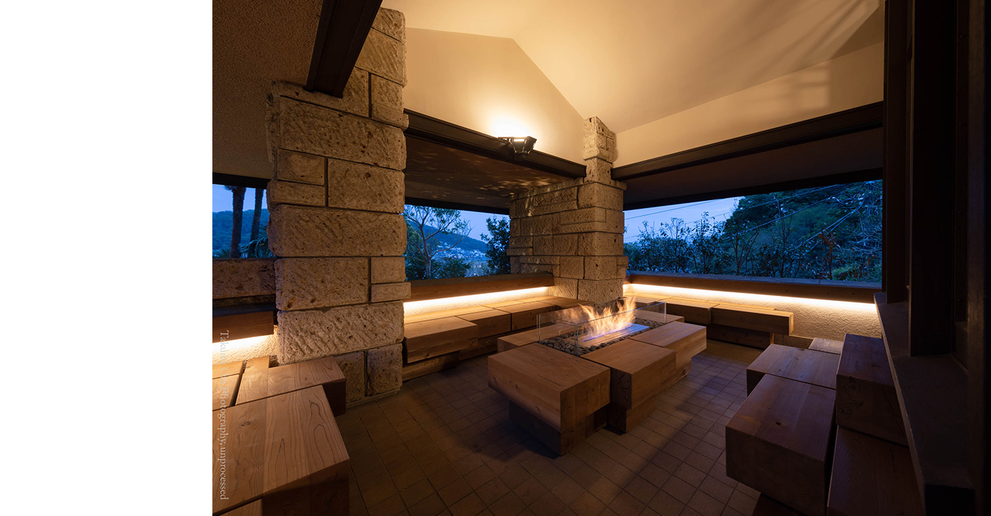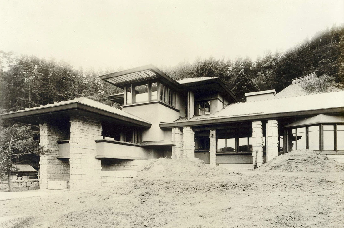 巨匠フランク・ロイド・ライトの薫陶を受けた愛弟子・遠藤新が1928年、師の意匠を色濃く反映させて設計。葉山の自然と融和したプレイリースタイル、重なり合う構造と大谷石……。